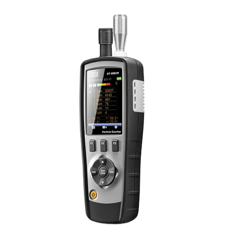 غبار سنج، ذره شمار، پارتیکل کانتر و شمارنده جرم ذرات اسامی دیگر مدل DT-9881M از کمپانی بزرگ و معتبر CEM تایوان می باشد. دارای صفحه نمایشگر رنگی TFT LCD به ابعاد 2.8 اینچی است که قابلیت نمایش عکس و فیلم های گرفته شده را با وضوح و شفافیت بالایی را دارا می باشد.