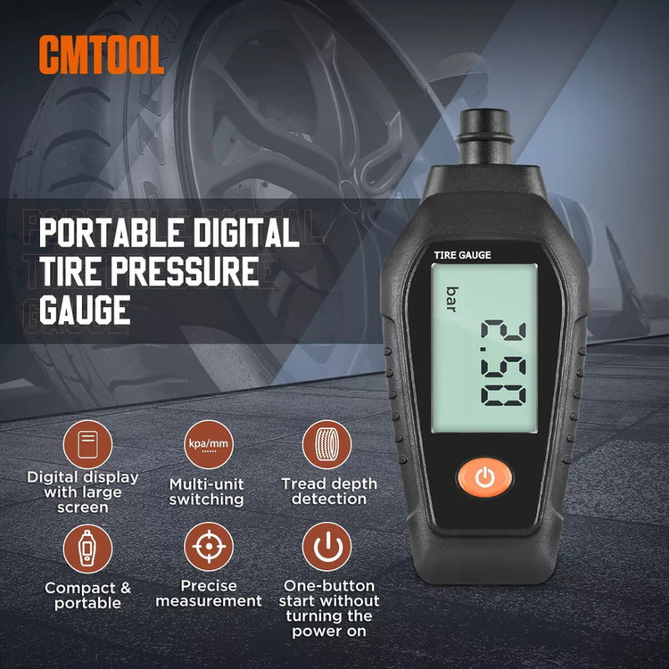 عملکرد این دستگاه بسیار ساده است. کاربر فقط باید ورودی هوای دستگاه را به درگاه سوپاپ تایر فشار داده و در هنگام اندازه گیری فشار تایر آن را محکم نگه دارد و مقدار فشار تایر را می توان سریع و دقیق اندازه گیری کرد
