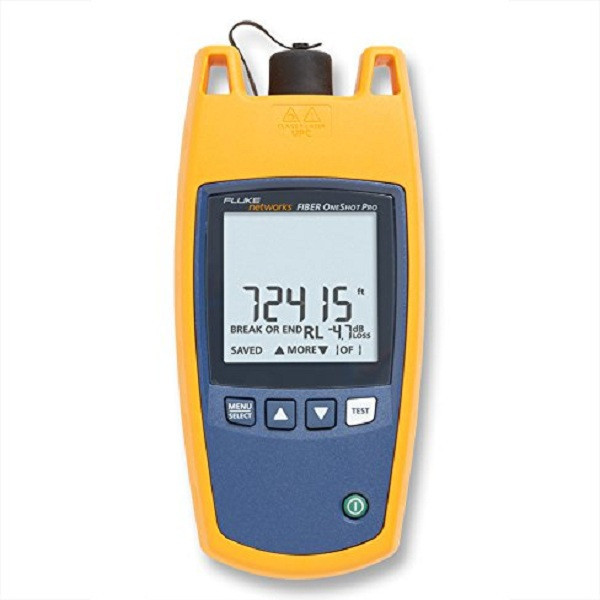 این دستگاه یک نوع تستر فیبر نوری می باشد که جهت محاسبه افت خط فیبر نوری فیبر های سینگل مود استفاده می شود. Fluke Networks Fiber One Shot pro که عملا نوعی otdr فیبر نوری می باشد به راحتی محل loss های فیبر نوری و مسافت آن را در LCD دستگاه به صورت متنی نمایش می دهد و شما براحتی می توانید حتی مسافت های کوتاه و بلند رو تست و اندازه گیری می کنید و امکان ذخیره سازی را در داخل دستگاه فراهم می سازد. دستگاه های تست فیبر نوری OTDR (بازتاب سنج های دامنه زمانی نوری) داده های گرافیکی و تجزیه و تحلیل را در تمام طول مسیر یک کابل، بسیار فراتر از قلم فیبر نوری و پاورمیتر فیبر نوری در اختیار پیمانکاران فیبر نوری می گذارد. برد بالای دستگاه تا مسافت 23 کیلومتری و همچنین امکان تست طول موج های استاندارد1310و PON: 1310، 1490، 1550 و 1625 نانومتر (FTTH-PON-GPON-LAN-WAN) دارد و نیازی به کالیبراسیون سالیانه نیز ندارد . در ضمن امکان تست برخط Active فیبر نوری را دارا می باشد .