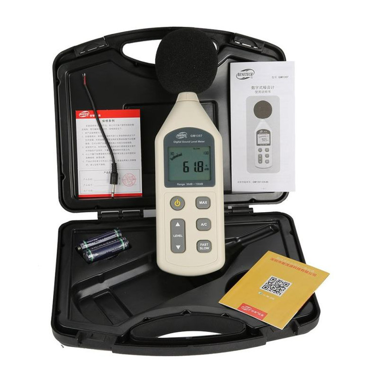 صداسنج دیجیتال بنتک مدل GM1357 ساخت چین طراحی شده بر اساس استانداردهای استاندارد کمیته بین المللی برق: IEC 651 TYPE 2 & ANSI 1.4 TYPE 2. محدوده اندازه گیری Wild: 30-130dB. دقت: تا ± 1.5dB. شیشه جلو برای فیلتر کردن سیگنال های ناخواسته. با 2 سطح فشار صوتی وزنی معادل A و C. خروجی سیگنال قیاس AC و DC برای اتصال به ضبط کننده سطح تحلیلگر فرکانس، تحلیلگر FFT و ضبط گرافیکی موجود است. این دستگاه دارای وزن دهی فرکانس برای اندازه گیری کلی سطح صدا است. ویژگی های کلی این محصول عبارتند از: بازه اندازه گیری مناسب، نمایش 5 رقم در صفحه، نمایشگر چراغدار و منبع تغذیه 9 ولتی، اندازه گیری همزمان و همچنین ثبت مقادیر ماکسیمم و غیره. وزن فرکانس C برای بررسی محتوای فرکانس پایین صداها. صفحه نمایش LCD بزرگ با خواندن ارقام دارای حالت های مشخصه پویا سریع و آهسته. سرعت سریع برای دریافت خواندن فعلی. سرعت آهسته برای خواندن میانگین در عرض 1 ثانیه. عملکرد نگهداری حداکثر مقدار برای قفل کردن حداکثر خواندن. مجهز به توپ اسفنجی طراحی خاموش خودکار برای صرفه جویی در انرژی. ابزار قابل حمل، استفاده آسان و مفید برای کنترل کیفیت صدا در کارخانه، اداره، خانه، مدرسه و محل ساخت و ساز.