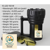 چراغ قوه یووی uv یا فرابنفش اسکنر گوهر شناسی و سنگ شناسی و بازرسی فنی و کارشناسی رنگ خودورو همراه با عینک uv مدل 10 LED