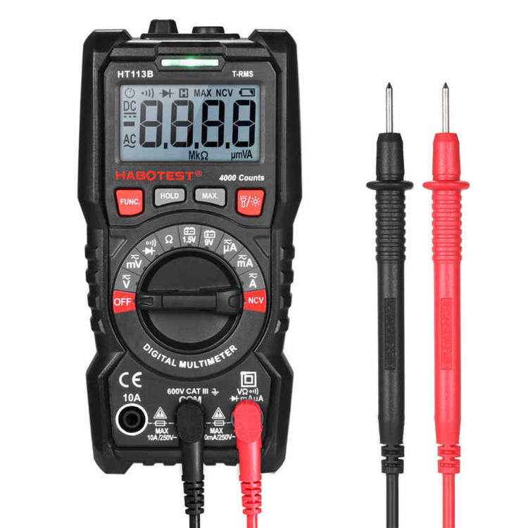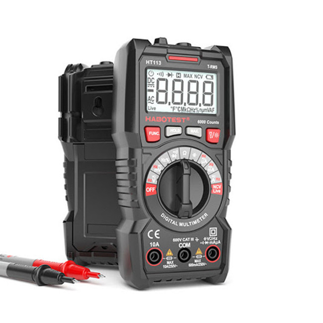 دستگاه مولتی متر دیجیتال HaboTest مدل HT113B مولتی متر دیجیتال هابوتست مدل HT113B یک مولتی متر چندمنظوره با نمایش ارقام تا 4000 رقم و با عملکرد دقیق می باشد .این مولتی متر ، یکی از دقیق ترین مولتی مترهای کمپانی هابوتست می باشد که از طریق جوش آزما تجهیز عرضه گردیده است و می تواند جریان AC/DC ،ولتاژ AC/DC ، مقاومت و خازن را اندازه گیری کند. همچنین این مولتی متر Auto Range با کیفیت دارای قابلیت TRUE RMS، NCV،تست دیود و پیوستگی می باشد. این محصول علاوه بر نور پس زمینه، چراغ قوه برای کار در محیط های تاریک هم دارد.