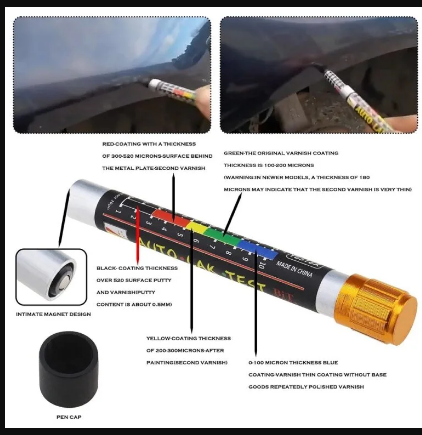 قابل حمل و سبک: به شکل یک خودکار کوچک طراحی شده و از مواد با کیفیت بالا ساخته شده است و به شما امکان میدهد آن را همیشه با خود حمل کنید و همیشه آماده باشید. به سرعت و با دقت بررسی کنید که آیا وسیله نقلیه قبلاً رنگآمیزی شده است یا خیر.