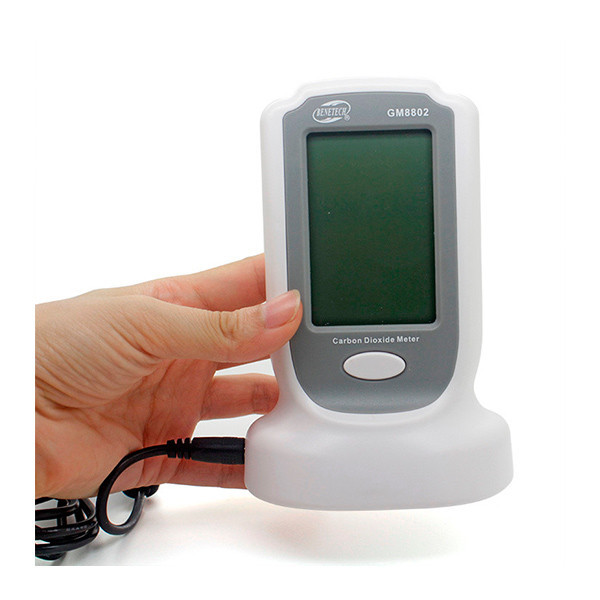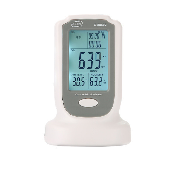 دستگاه سنجش میزان دی اکسید کربن (CO2)دیجیتال GM8802 ، ابزاری است جهت تست وجود گاز دی اکسید کربن در محدوده 0~2000 ppm و میزان حضور آن در محیط است. ردیاب دی اکسید کربن مدل BENETECH GM8802 ، دستگاهی با قابلیت حساسیت بالا و اندازه گیری دقیق گاز CO2 محیط را با رسیدن به درجه بالا با هشدار به کاربر و افراد اطلاع میدهد. ردیاب دی اکسید کربن دستگاهی با صفحه نمایش lcd و قدرت باطری عالی دستگاهی قابل اعتماد برای تست گاز CO2 محیط است.