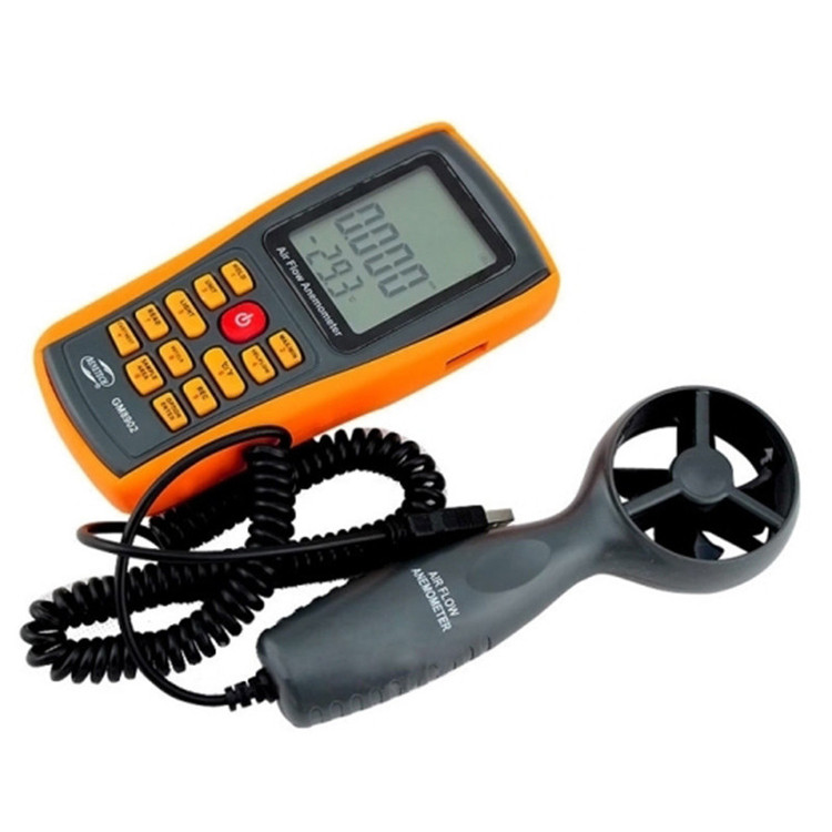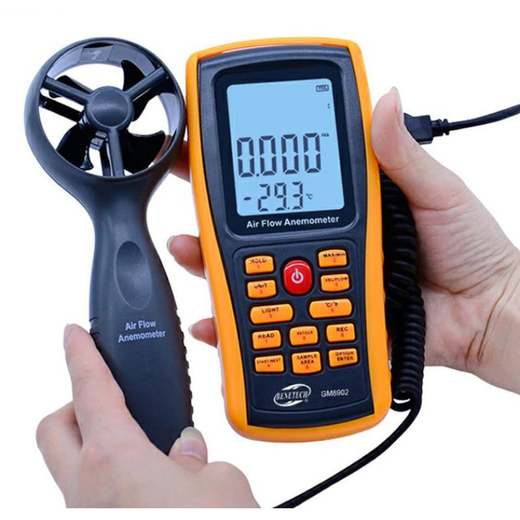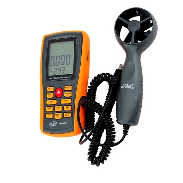 سرعت سنج باد ارزان قیمت بنتک مدل BENETECH GM8902 از برند بنتک چین میباشد. از ویژگیهای مهم این بادسنج ارزان قیمت میتوان به بازه اندازه گیری سرعت باد از 0.3 تا 45 متر بر ثانیه با دقت + – 3% و همچنین با وضوح 0.1 یکدهم برای سنجش میزان سرعت هوا و میزان دمای هوای خروجی از پراب و نمایشگر با نمایش و تبدیل واحدهای مختلف سنجش سرعت باد مانند فوت بر ثانیه ، ناتس ، کیلومتر بر ساعت ، مایل بر ساعت ، با رنج دمایی 0 تا 45 درجه سانتیگراد از ویژگی های مهم این فلومتر هوا میباشند از ویژگی های مهم اندازه گیری این فلومتر ارزان بنتک مدل GM8902 میباشد. و همچنین نمایشگر چراغدار و منبع تغذیه 9 ولتی را میتوان به عنوان ویژگی های عمومی دستگاه نام برد. از ویژگی های دیگر این محصول میتوان به اندازه گیری همزمان میزان سرعت هوای ورودی به پراب و همچنین میزان دمای هوا ، منبع تغذیه باتری 9 ولتی کتابی ، اندازه گیری سریع اشاره کرد.