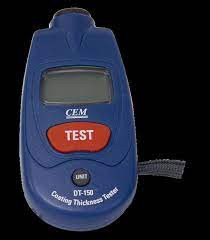 ضخامت سنج رنگ و پوشش سی ای ام مدل CEM DT-150 قابلیت کاربرد در در پوشش های غیر مغناطیسی(مانند رنگ ، روی) بر روی فلزات آهنی و پوشش های عایق (مثل رنگ) بر روی فلزات غیرآهنی و پوشش فلزات غیر آهنی روی بسترهای عایق را دارد. این دستگاه از شیوه های اندازه گیری جریان الکتریکی مغناطیسی و یا جریان گردابی (فوکو) که توسط میدان مغناطیسی متغیر در ماده رسانا القا میشود، استفاده میکنداین ضخامت سنج، اندازه گیری را در دو رنج 0 تا 2 میلیمتر و یا 0 تا 80 میل انجام میدهد. سایر ویژگی های ضخامت سنج رنگ و پوشش سی ای ام مدل CEM DT-150 شامل حمل آسان، دقت بالا، سادگی استفاده و اندازه کوچک است.