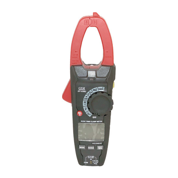 کلمپ آمپرمتر 1000AC/DC آمپر CEM DT-9381 برای اندازه گیری ولتاژ و جریان متناوب AC و ثابت DC، مقاومت، خازن و دما به وسیله پراب نوع K مورد استفاده قرار میگیرد. کلمپ آمپرمتر 1000 آمپر AC/DC و TRUE RMS سی ای ام مدل CEM DT-9381 دارای کلاس حفاظتی CAT III 1000V و CAT IV 600V است و در برابر شوک الکتریکی محافظت میشود. همچنین توانایی تست باتری، تست دیود، تست پیوستگی با بوق و تست پایه های ترانزیستور را دارد.