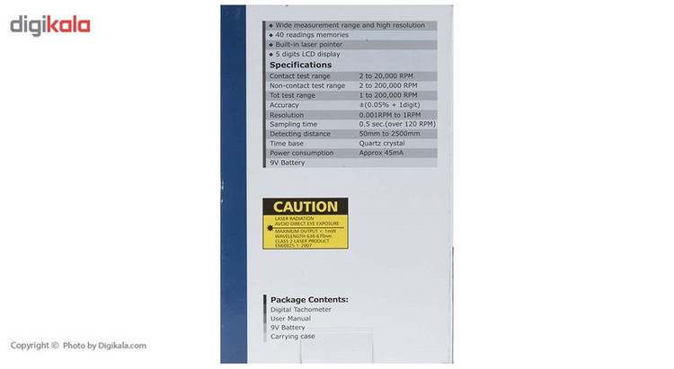 دامنه اندازهگیری: 1 تا 200000 دور بر دقیقه