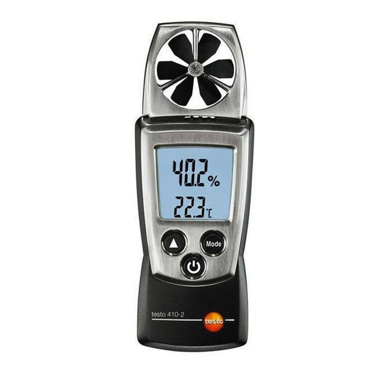 سرعت سنج باد مدل TESTO 410-2 قابلیت سنجش چندین پارامتر هوا از جمله رطوبت هوا ، سرعت باد و جریان هوا را داراست یک دستگاه موثر در پارامتر های هوا ست که بسیار قابل اطمینان است. این آنومتر دارای پره هایی جهت اندازه گیری سرعت باد می باشد که به همین عنوان به این نوع دستگاه ها باد سنج پره ای نیز می گویند. کاربرد باد سنج پره ای در صنعت و در بهداشت محیط می باشد یکی از مکان های مهم برای این دستگاه ها باد سنج های هواشناسی است. سرعت سنج باد تستو مدل TESTO 410-2 یک دستگاه دقیق و مقرون به صرفه است که پارامترای مورد نظر را به سرعت و راحتی و با دقت اندازه گیری می کند و همچنین توانایی اندازه گیری رطوبت, نقطه شبنم و ... را دارد. از دیگر ویژگی های این دماسنج محاسبه و نمایش میانگین, حداقل و حداکثر می باشد. برای اندازه گیری دما, رطوبت و سرعت باد هر کدام پراب جداگانه ای طراحی شده است. همچنین با داشتن محافظ لنز و کیف چرمی دستگاه را در برابر صدمات محافظت می شود.