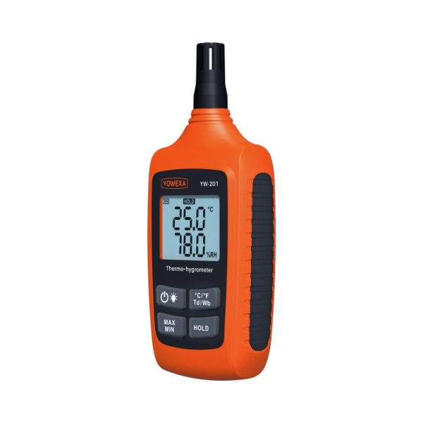 دستگاه دما سنج و رطوبت سنج YW-201 یک دستگاه پرتابل برای اندازه گیری دما از -20~60℃ و برای اندازه گیری رطوبت محیط از 0~100%RH توسط شرکت یووکسا ساخته شده است . این دستگاه رطوبت سنج با وزن کم و سایز مناسب برای حمل است . این دستگاه دماسنج و رطوبت سنج از سرعت خوانش بالایی برخوردار است .