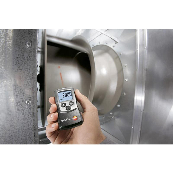دورسنج تاکومتر لیزری تستو مدل TESTO 460 با پارت نامبر 0560460 یک تاکومتر دیجیتال محصول کشور آلمان می باشد.دورسنج غیر تماسی جیبی TESTO 460 با استفاده از تکنولوژی نوری، تعداد دور تجهیزات الکتریکی دوار همچون شفت ها و دستگاه های تهویه را اندازه گیری می نماید. دورسنج غیر تماسی جیبی TESTO 460 قادر به اندازه گیری دور از 10 سانتیمتر تا 40 سانتیمتر می باشد. برای اندازه گیری دور،یک نشانگر لیزری به دستگاه در حال دوران تابیده و با استفاده از بازتاب نور آن، دور دستگاه توسط تاکومتر اندازه گیری می شود. مقدار ماکزیمم و مینیمم دور با فشردن دکمه دستگاه به راحتی نمایان می شود.