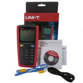دماسنج تماسی ترموکوپل دو کانال یونیتی UNI-T UT325 دستگاهی پیشرفته با دو کانال اندازه گیری بوده که میتواند دما را به صورت تماسی با دقت بالا از 200- تا +1372 اندازه گیری کند. این ماسنج تماسی دارای حافظه 100 مقداری بوده و میتواند از طریق کابل USB به کامپیوتر متصل شود. نرم افزار کامپیوتری قابلیت تحلیل داده را داشته و شما میتوانید با بیش از 7 نوع ترموکوپل توسط این دماسنج تماسی دما را اندازه گیری کند. قابلیت تنطیم آلارم برای حدود دمایی مشخص ، نمایشگر بزرگ با نور پس زمینه ، اندازه گیری مقدار ماکزیمم ، مینمم و مقدار متوسط و قابلیت کالیبراسیون اتومات از مهمترین قابلیت های این دماسنج تماسی ترموکوپل است.
