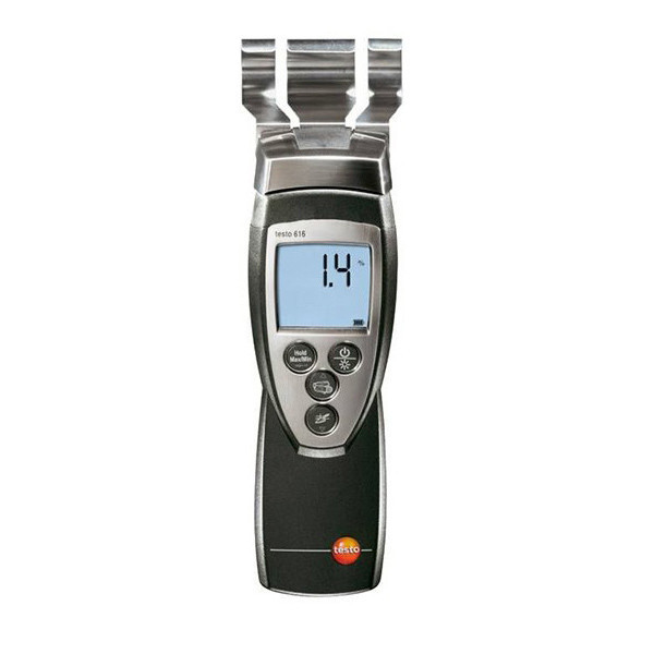 رطوبت سنج چوب و مصالح ساختمانی تستو TESTO 616 یک رطوبت سنج حرفه ای با اندازه گیری دقیق و غیر مخرب جهت اندازه گیری رطوبت چوب و سایر مصالح ساختمانی مورد استفاده قرار میگیرد. رطوبت سنج سطحی غیر مخرب چوب و مصالح ساختمانی تستو TESTO 616 دستگاهی دقیق و با سرعت اندازه گیری بالا بوده که میتواند بدون آسیب رساندن به ماده در حال تست، مقدار رطوبت سطحی را تا عمق بیش از 5 سانتی متر اندازه گیری کند. به کمک این قابلیت میتوان به سرعت نم زدگی در دیوار و سقف و یا وسایل چوبی از جمله کابینت ها و روکش های MDFرا تشخیص داد و قبل از دفرمه شدن و یا آسیب دیدن اقدام به خشک سازی و یا برطرف نموندن عامل نم زدگی کرد. نحوه اندازه گیری در این دستگاه به صورت درصدی بوده و با مقایسه مقدار رطوبت سطح مورد نظر با سطح خشک همان متریال به صورت نمونه ، عمل اندازه گیری را انجام داده و با فشردن دکمه مربوطه عمل ذخیره سازی صورت میگرد. در این دستگاه 10 متریال به عنوان شاخص برای اندازه گیری رطوبت سطحی ذخیره شده که میتوان به : چوب نرم ، چوب سخت ، تخته های فشاری ( نئوپان ، MDF ، ملامینه )، سیمان ، بتن ، آجر، گچ ، سیمان سفید و … اشاره کرد. بیشترین و مهمترین کاربرد این دستگاه میتواند به نظارت بر فرآیند خشک سازی چوب باشد زیرا که اگر چوب با درصد رطوبت بالا در ساخت لوازم مورد استفاده قرار گیرد امکان دفرمه شدن و تغییر شکل مکانیکی در محل کار را داشته و باعث عدم کارایی سازه چوبی خواهد شد.