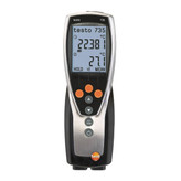 دماسنج مرجع تماسی چند کاناله TESTO 735-2 دستگاهی بسیار حرفه ای جهت اندازه گیری دما به صورت تماسی توسط انواع پراپ ها از طریق سه کانال اتصال پراپ می باشد که بالاترین دقت اندازه گیری را با طراحی سیستم قابل تنظیم برای کاربر به ارمغان آورده است. همچنین دارای یک سنسور نقطه اتصال برای یک سنسور PT100 بسیار دقیق و دو نقطه اتصال برای نوع سریع سنسور ترموکوپل K، T، J و S می باشد. بالاترین دقت اندازه گیری تا حد 0.05˚C،صفحه نمایش LCD بزرگ و واضح و خوانا ،حافظه داخلی برای ثبت مقادیر MIN,MAX و همچنین ΔT اخلاف دمایی ،پرینت مقادیر از طریق دستگاه پرینتر تستو ،آلارم یا سیستم قابل تنظیم توسط کاربر ،قابلیت پرینت گزارشات اندازه گیری به صورت اتوماتیک و با قابلیت تنظیم توسط کاربر(مانند هر یک دقیقه پرینت گزارشات را چاپ کن) می باشد. ترمومتر مورد نظر دارای استاندارد حفاظتی IP65 ،گواهی کالیبراسیون بین المللی EN 13485 می باشد. از ویژگی های حرفه ای و طراحی شده ترمومتر TESTO 735 می باشد. ترمومتر مورد نظر دارای پراب های رادیو فرکانسی یا پراب های وایرلس،منبع تغذیه باتری های قلیایی منگنز،باتری های و AA تایپ و استاندارد حفاظتی IP65 می باشد.وزن این ترمومتر 428 گرم،مواد سازنده دستگاه شامل ABS،TPEو فلز می باشد تفاوت مدل 2-735 با 1-735 در قابلیت حافظه دخلی 10 هزار مقداری با قابلیت انتقال داده از طریق USB به عنوان مرجع کالیبراسیون انواع ترموکوپل میباشد.