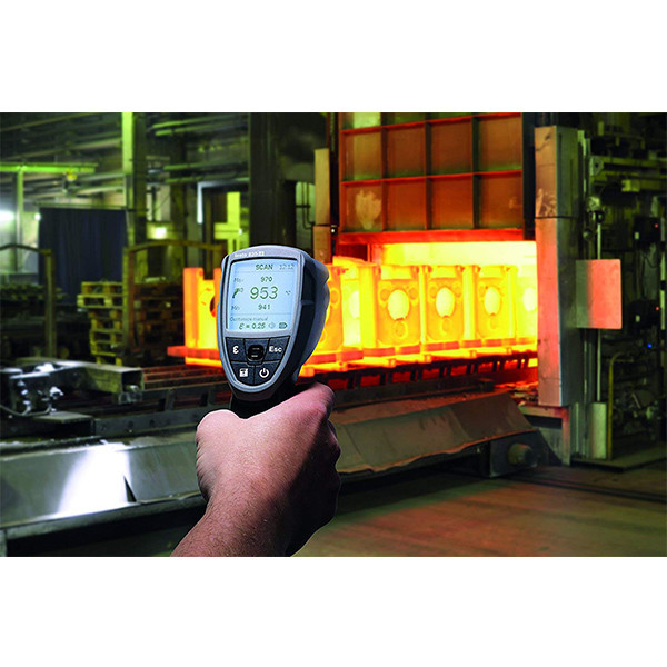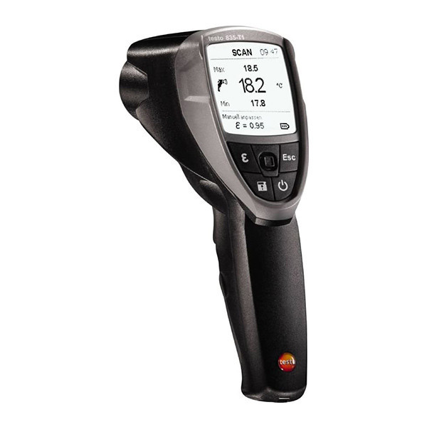 ترمومتر لیزری تستو آلمان مدل 835T2 دستگاهی برای اندازه گیری درجه حرارت به صورت لیزری و غیرتماسی با جسم می باشد. دما یکی از مهمترین مولفههای قابل اندازهگیری در موقعیتهای گوناگون بهشمار میرود؛ مثلاً اهمیت اندازهگیری دما در واحدهای صنعتی امروزه بر هیچکس پوشیده نیست.محدوده اندازه گیری به صورت لیزری طیف گسترده ای از محدوده درجه حرارت را پوشش می دهد و سبب کاربرد های فراوان این ترمومتر لیزری شده است، به طوری که رنج اندازه گیری در محدوده -۱۰ درجه تا ۱۵۰۰ درجه سانتی گراد با دقت اندازه گیری ۲.۰ درجه سانتی گراد و از فاصله دور از جسم می باشد. علاوه بر اندازه گیری به صورت غیرتماسی، امکان استفاده از پراب دمای تماسی نوع K نیز فراهم آمده است تا در صورت نیاز کاربر بتواند اندازه گیری را به صورت تماسی نیز انجام دهد. محدوده اندازه گیری این دستگاه به صورت تماسی در رنج -۵۰ درجه تا ۱۰۰۰ درجه سانتی گراد می باشد. یکی از ویژگی های بارز در ترمومتر لیزری تستو آلمان مدل 835T2 امکان استفاده از لیزر در ۴ نقطه برای اندازه گیری بسیار دقیق و جلوگیری از نمونه برداری نادرست است. قابلیت ذخیره داده های نمونه برداری شده تا ۲۰۰ مقدار و همچنین امکان اندازه گیری درجه حرارت از فاصله دور (۵۰:۱) و در عین حال با دقت اندازه گیری بالا از ویژگی های این دما سنج می باشد. می توان از این ترمومتر لیزری در تمام بخش های تجاری و صنعتی مانند نظارت و بازرسی سیستم تهویه، نگهداری سیستم های صنعتی یا کنترل کیفیت محصولات استفاده کرد.