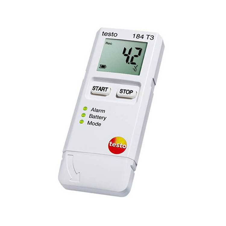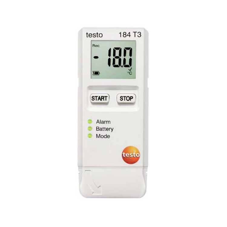 دیتالاگر USB دما تستو TESTO 184-T3، با محدوده اندازه گیری دما توسط NTC سنسور -35 تا +70 درجه سانتی گراد ، قابلیت ثبت و ضبط داده را با مدت زمان نامحدود در 40000 مقدار را انجام دهد. اطلاعاات بلافاصله میتوانند در فایل PDF قرار گیرند. با این دیتالاگر در حمل و نقل محصولات حساس مانند دارو ها ، غذاها یا تجهزات الکترونیکی با خیال آسوده تا تعداد روز نامحدود میتوانید نظارت کنید. اینکار فقط با فشردن یک دکمه و ثبت و ضبط دقیق اطلاعات دمایی انجام می شود، همینطور نشانگر های LED و نمایشگر LCD هشدار و وضعیت را نشان می دهد. ترموگراف دیجیتال قلمی USB با نمایشگر تستو TESTO 184-T3 دما یا به اصطلاح دیتالاگر دما دارای ابعاد بسیار کوچک و ضد آب و ضد ضربه (IP67 ) بوده که به همراه نمایشگر بر روی ترموگراف میتواند دمای محیط را به کمک سنسور NTC با نرخ 1 دقیقه تا 24 ساعت اندازه گیری و ذخیره نماید. مهمترین کاربرد این ترموگراف دیجیتال، کنترل دما به هنگام حمل و نقل به خصوص برای مواد حساس به تغییر دما مانند مواد غذایی و مواد دارویی ، باکس انتقال خون ( کول باکس ) و .... است. این ترموگراف USB سرخود بوده و دیگر نیاز به کابل اتصال ندارد. صفر کردن و تنظیمات اولیه به کمک PDF انجام میشود و نیازی به نصب نرم افزار جانبی ندارد.