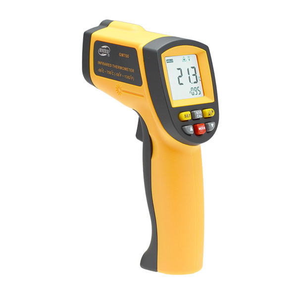 ترمومتر لیزری مدل GM700 ، یک ترمومتر لیزری تفنگی با دقت بالا از کمپانی BENETECH میباشد. این محصول دارای ویژگی های مهمی از جمله اندازه گیری بازه گسترده دمایی با وضوح بالا ، ضریب تبدیل دمایی از سانتیگراد به فارنهایت،هشدار باتری ضعیف، نور پس زمینه صفحه نمایش و قابلیت خاموشی خودکار اشاره کرد.