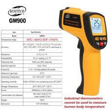 ترمومتر لیزری مدل GM900 ، یک ترمومتر لیزری تفنگی با دقت بالا از کمپانی BENETECH میباشد. این محصول دارای ویژگی های مهمی از جمله اندازه گیری بازه گسترده دمایی با وضوح بالا ، ضریب تبدیل دمایی از سانتیگراد به فارنهایت،هشدار باتری ضعیف، نور پس زمینه صفحه نمایش و قابلیت خاموشی خودکار اشاره کرد.