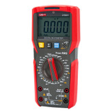 مولتی متر دیجیتال یونیتی مدل UNI-T UT89XD یک دستگاه پرتابل قابل اعتماد است که قابلیت اندازه گیری مقدار موثر شکل موج سینوسی را داراست. این دستگاه با استفاده از محافظ بدنه مستحکم دو رنگی خود، ظاهر مدرن و توابع چندگانه سلیقه کاربران را به خود جذب می کند و یکی از مولتی متر های پیشرفته و صنعتی بازار محسوب می شود. این دستگاه دارای قابلیت اندازه گیری ولتاژ های متناوب و مستقیم تا 1000V می باشد. اندازه گیری جریان 20 آمپر DC/AC و پارامتر هایی نظیر مقاومت، ظرفیت خازنی، فرکانس، دیود، hFE ، پیوستگی و اتصال کوتاه سیم ، NCV و همچنین قابلیت تشخیص دقیق فاز و نول دیگر ویژگی های اساسی این مولتی متر هستند . این مولتی متر دیجیتال میتواند فاز و نول را با یک پراب تست شناسایی کنند و دما را به کمک پراب اندازه گیری نماید. مولتی متر دیجیتال یونیتی مدل UNI-T UT89XD دارای قابلیت تست LED نیز می باشد. هشدار سمعی و بصری، فلش لایت (چراغ قوه) و نور پس زمینه صفحه نمایش و خاموش شدن خودکار دیگر ویژگی های این دستگاه می باشد. مولتی متر های سری UT89X/UT89XD میتوانند درمحیط تاریک استفاده شوند. این دستگاه ها به علت داشتن کیف با دوام دو رنگ،ظاهر مدرن و عملکرد های متنوع بسیار مورد توجه کاربران قرار می گیرد.